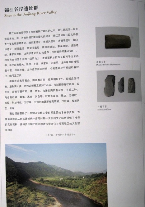 2009年6月10日至8月10日,贵州省文物考古研究所联合铜仁市文物局组成“锦江流域‘三普’考古工作组” 。重点对锦江流域铜仁段进行考古普查工作。普查主要发现落鹅遗址、岩董遗址、坳田董遗址、黄腊关遗址、落箭坪遗址、坳上坪遗址、新屋遗址等17处遗址(包括器物采集点3处),均分布在锦江干流的一级阶地上,遗址面积从数百至数万平方米不等。其中以黄腊关、新屋、茅溪、宋家坝、方田坝、龙井等遗址最丰富,保存亦佳。主体应在商周时期个别遗址早可至新石器时代晚可至汉代。