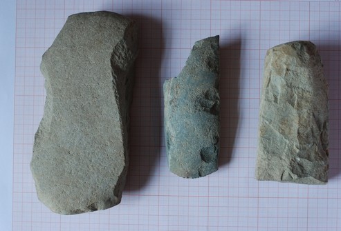 调查共采集石制品、陶片数百件,征集铜钲1件。石制品分打制、磨制两大类,用河边砾石直接加工而成。打制石器有砍砸器、石片等;磨制石器有斧、锛、凿等。陶器泥质,夹沙二种;有红褐、黄褐、黑皮、灰色等;纹饰有篮纹、绳纹方格纹、弦纹、附加堆纹、划纹等。可识别的器形有高领罐、凹底罐、梭形网坠,豆等。