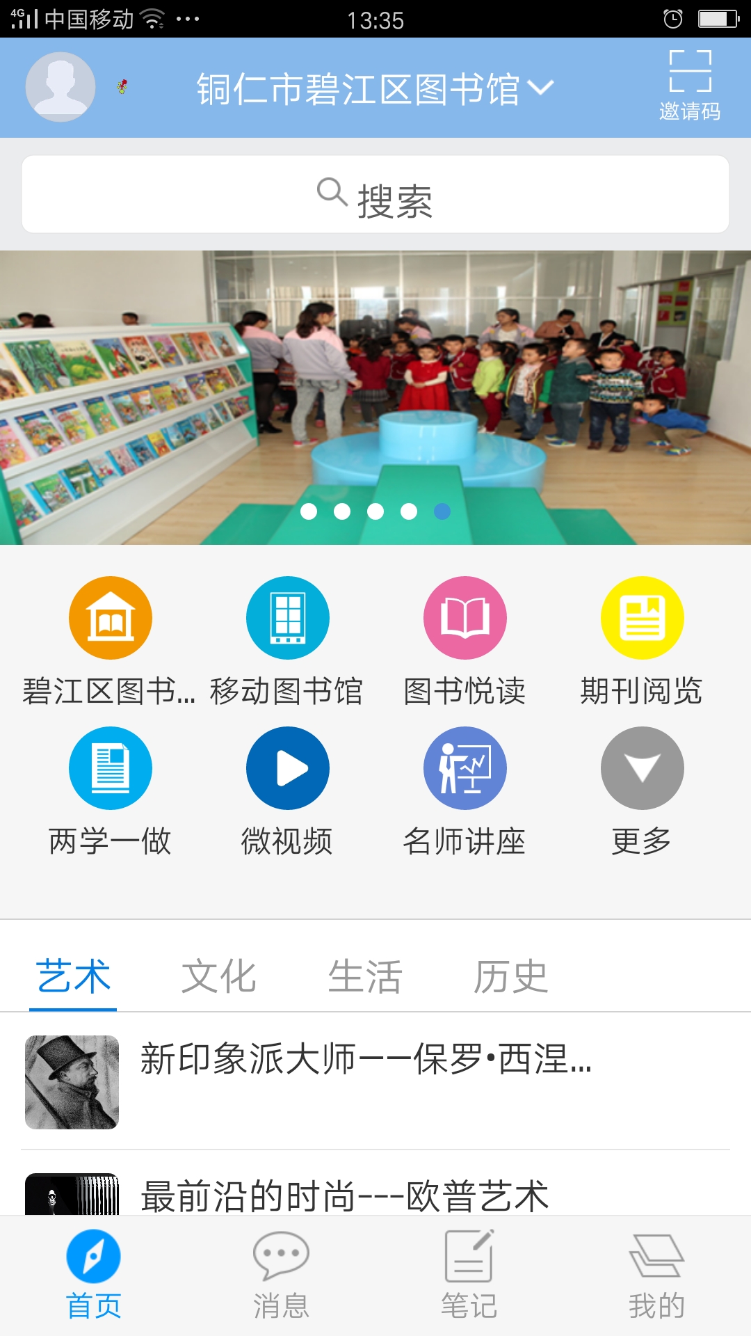 在首页右上角邀请码处输入ibjq ,进入铜仁市碧江区移动图书馆~